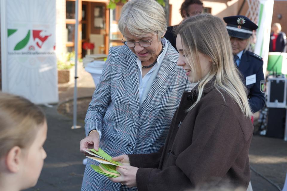 Schulministerin Dorothee Feller stellte die Aktion der NRW Initiative vor und überzeugte sich direkt bei den Kontrollen von der Wirkweise der Aktion. Zudem nahm sie die Landeshauptstadt Düsseldorf und den Fahrlehrer-Verband in die NRW Initiative auf, indem sie feierlich die Beitrittsurkunden überreichte.