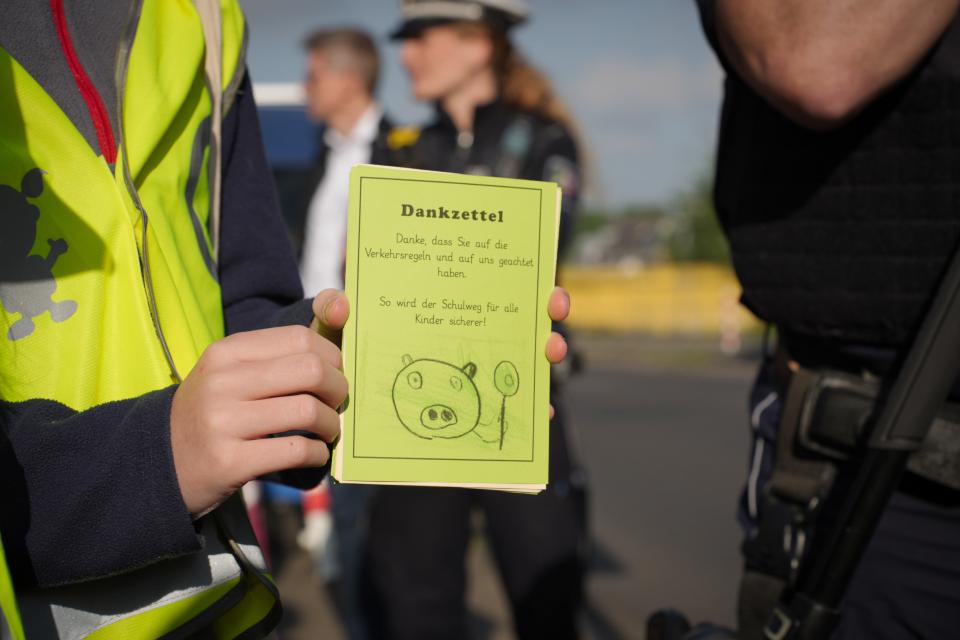 Hier möchte die NRW Initiative - #sicherimStraßenverkehr ansetzen und die Sicherheit von Kindern im Straßenverkehr erhöhen. Mit der landesweiten „Dank- und Denkzettelaktion“ soll die Aufmerksamkeit aller Verkehrsteilnehmerinnen und Verkehrsteilnehmer erhöht und ein Bewusstsein für die Gefahren im Straßenverkehr geschaffen werden.